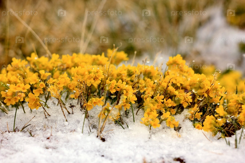 Желтые цветы на снегу