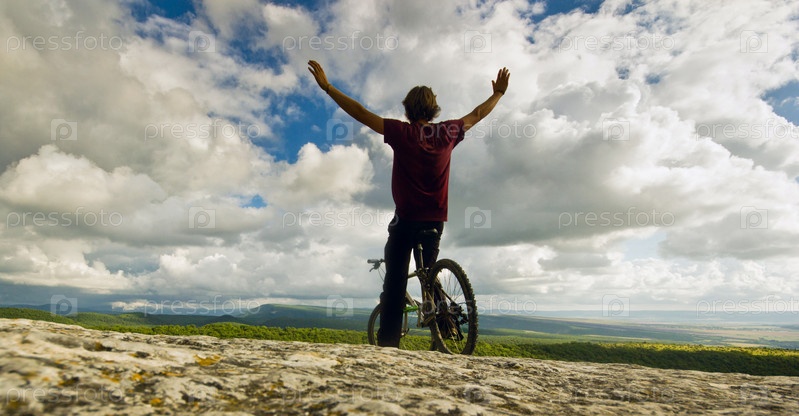 Мужчина на велосипеде на холме