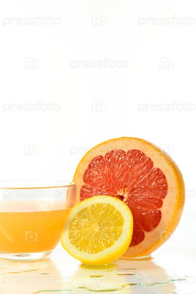 Половина грейпфрута и сок