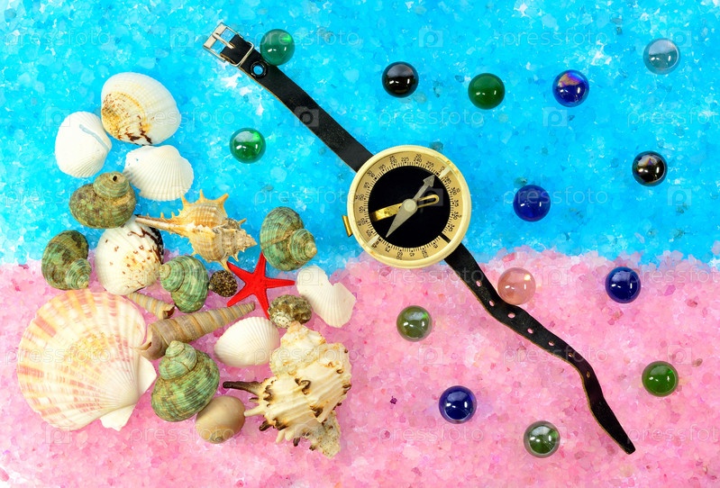 Морские раковины и компас на соли