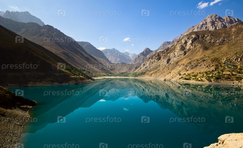 Горное озеро и высокие скалы