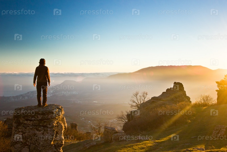 Человек на скале на закате