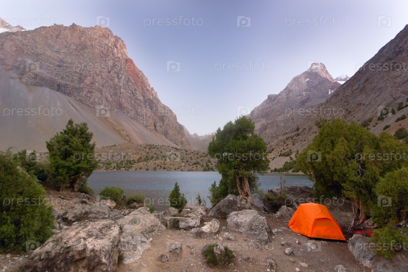 Палатка на берегу горного озера