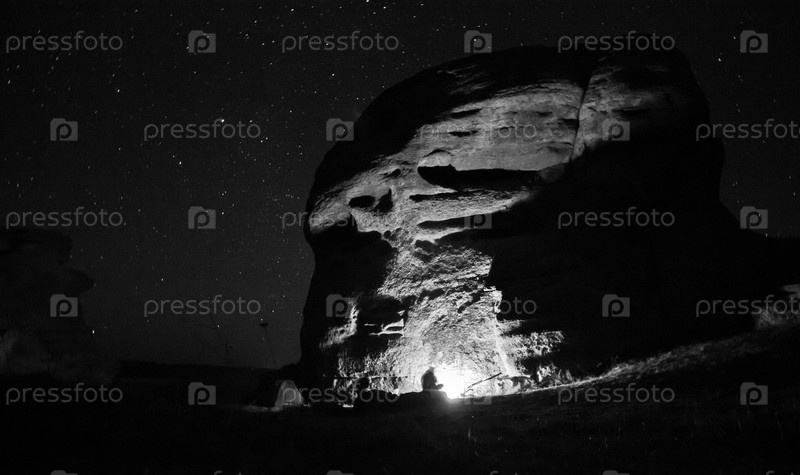 Человек у костра под горой