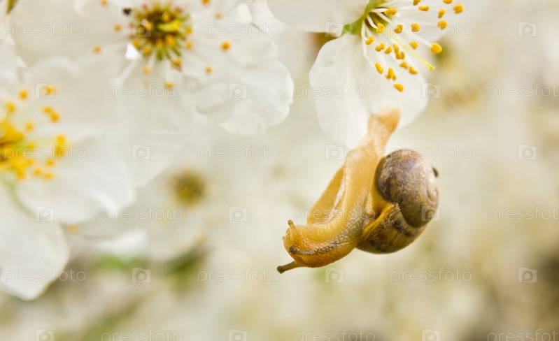 Улитка на цветущем дереве
