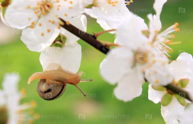 Улитка на цветущем дереве