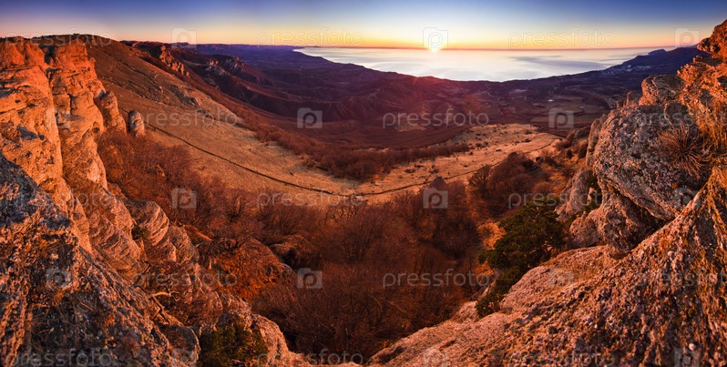 Горы и море на восходе солнца