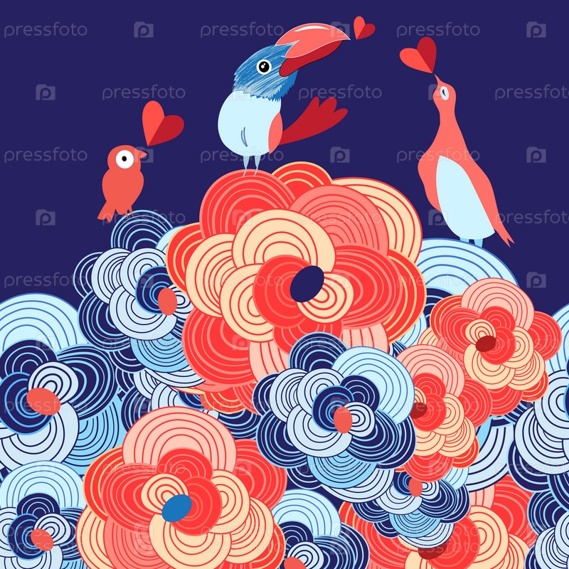 Фон с птицами на цветах