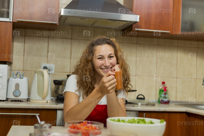 Девушка пьет чай