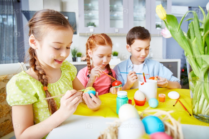 Дети с пасхальными яйцами