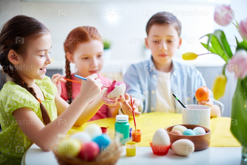 Дети с пасхальными яйцами