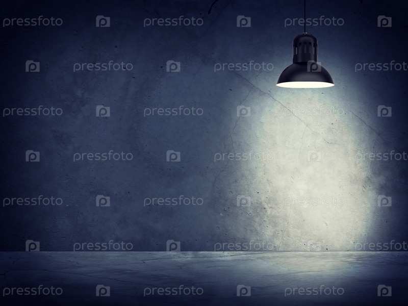 Серая бетонная стена и включенная лампа