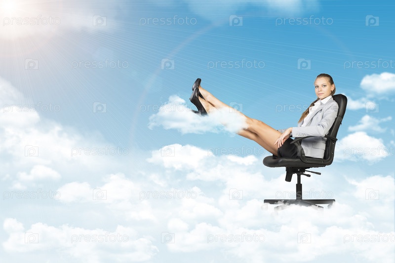 Женщина сидит в кресле на фоне неба