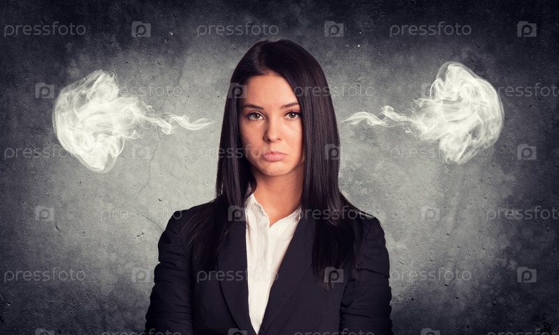 Грустная женщина с паром из ушей