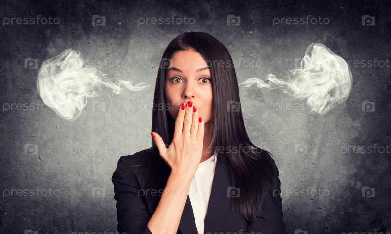 Удивленная женщина с паром из ушей