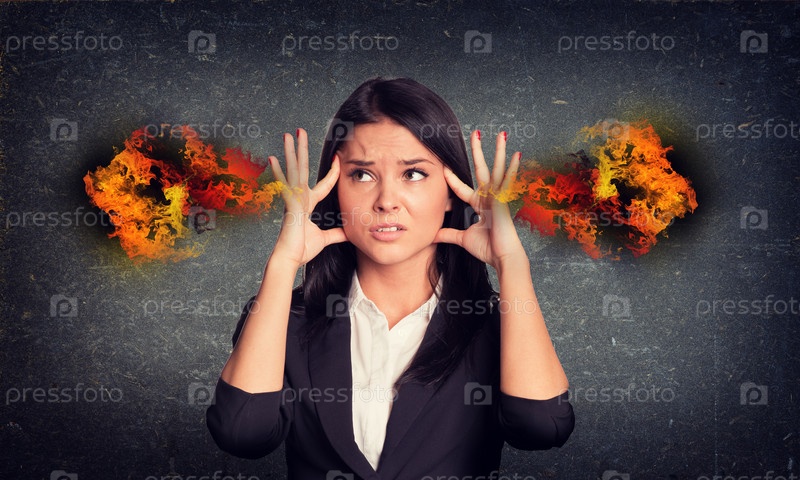 Расстроенная женщина с огнем из ушей