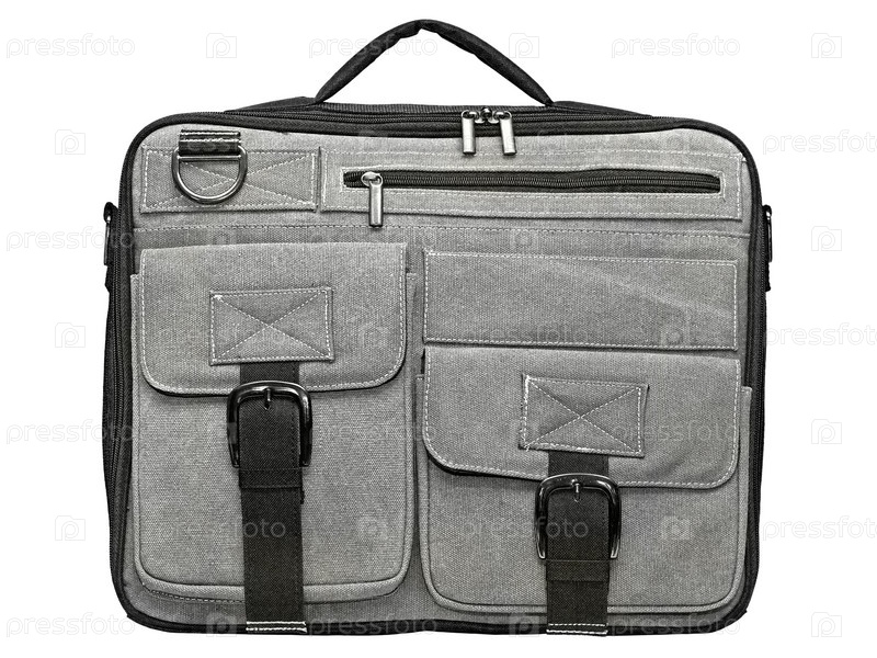 Сумка для ноутбука из серой ткани на белом фоне