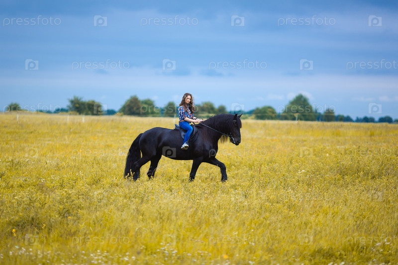Девушка верхом на лошади в сельской местности