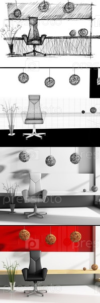 Четыре этапа создания интерьера, иллюстрация