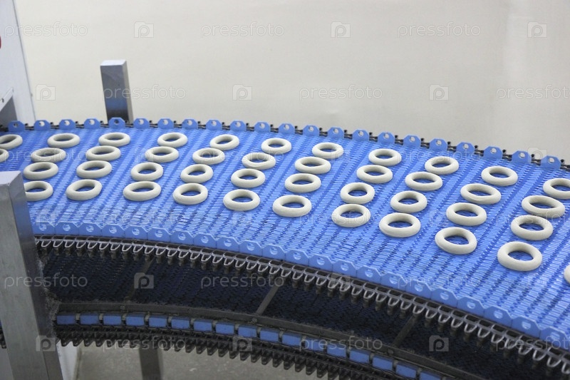 Заготовки из теста на конвейере