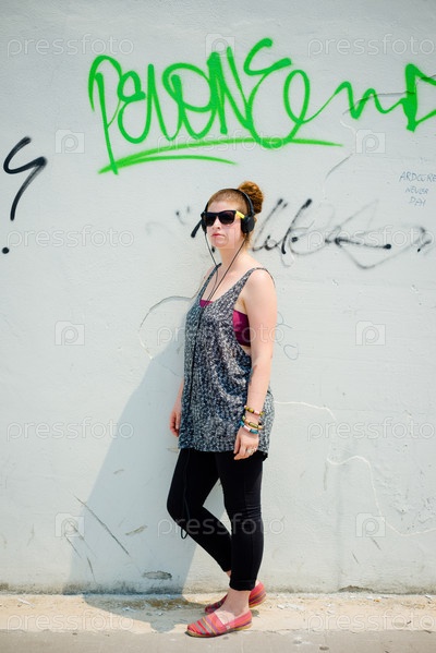 Молодая женщина слушает музыку