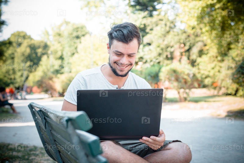 Стильный мужчина с ноутбуком на улице