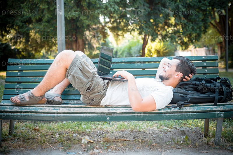 Стильный мужчина с ноутбуком на улице