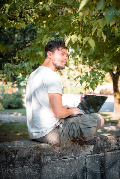 Стильный молодой мужчина с ноутбуком