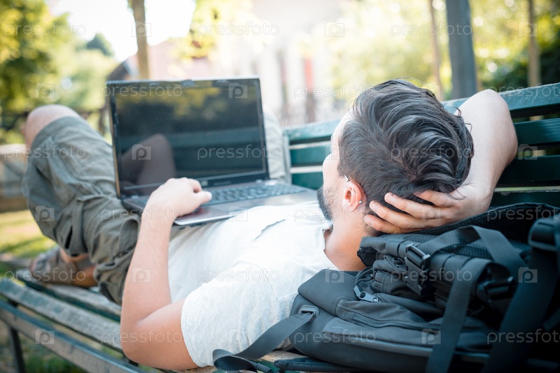 Стильный молодой мужчина с ноутбуком