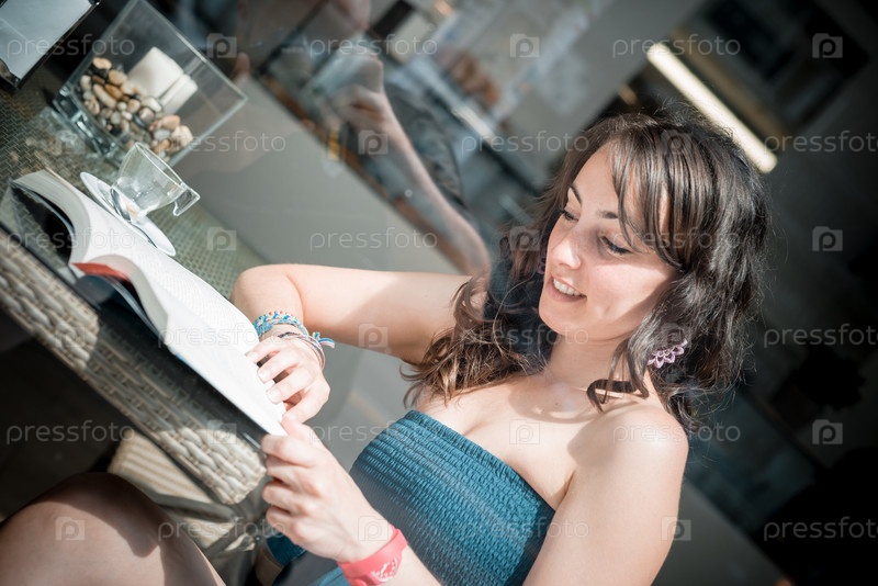 Молодая красивая женщина в кафе