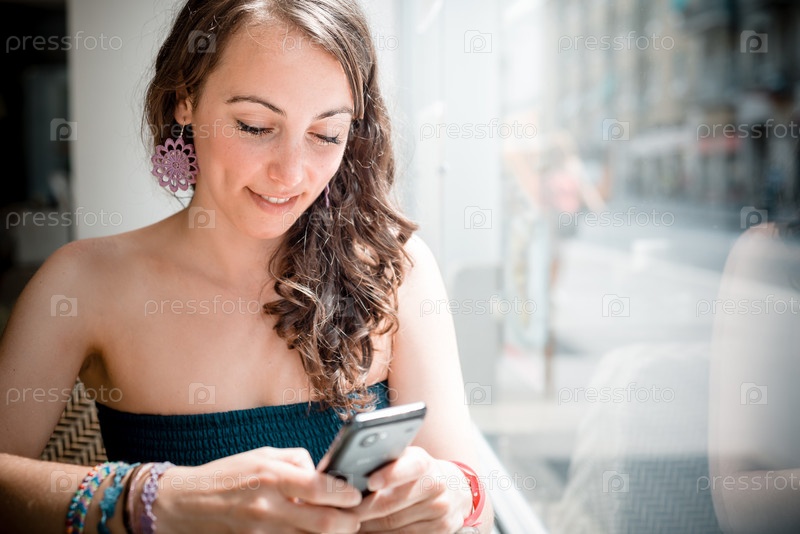 Молодая красивая женщина в кафе