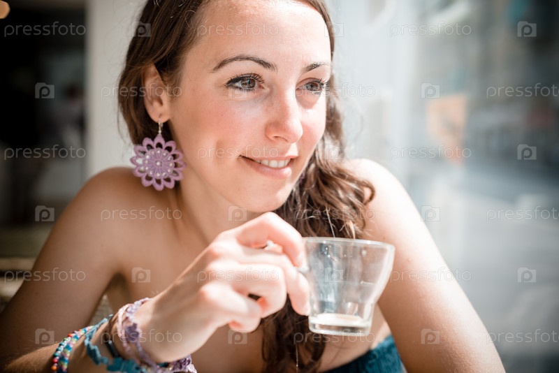 Молодая красивая женщина в кафе