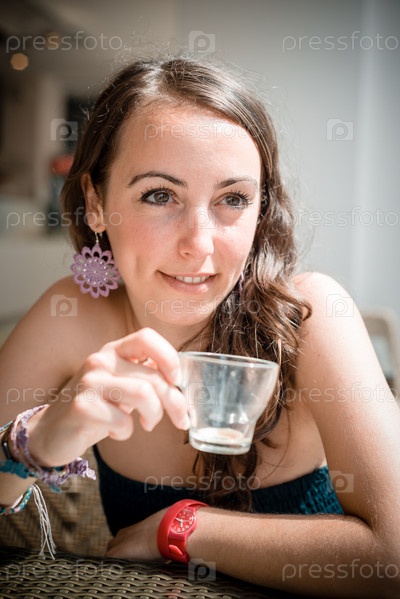 Молодая красивая женщина в кафе