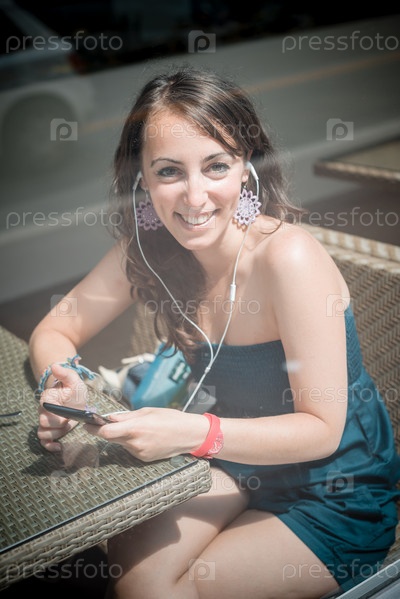 Молодая красивая женщина в кафе