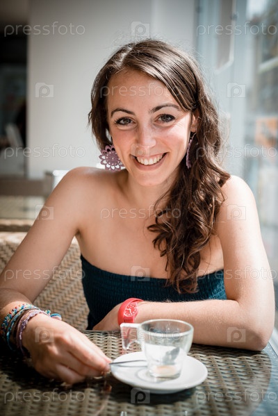 Молодая красивая женщина в кафе
