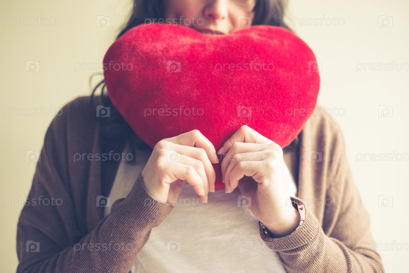 Красивая женщина с плюшевым сердцем