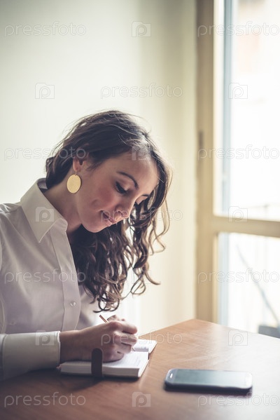 Красивая женщина пишет в блокноте