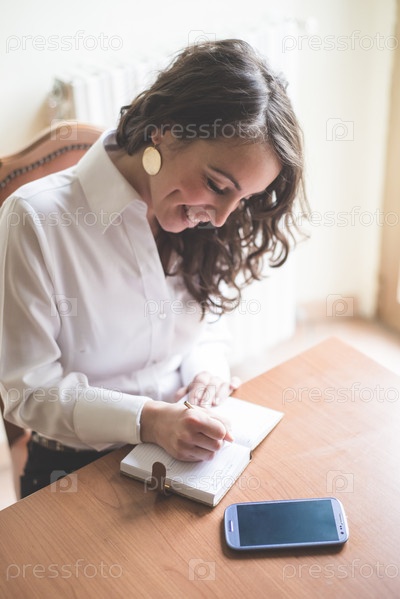 Красивая женщина пишет в блокноте
