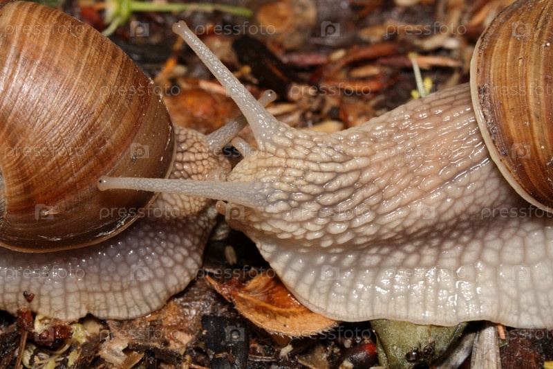 Две улитки с рожками ползут навстречу друг другу
