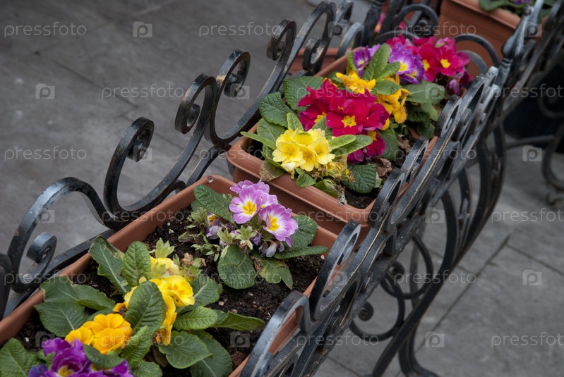 Горшки с цветами на городской улице
