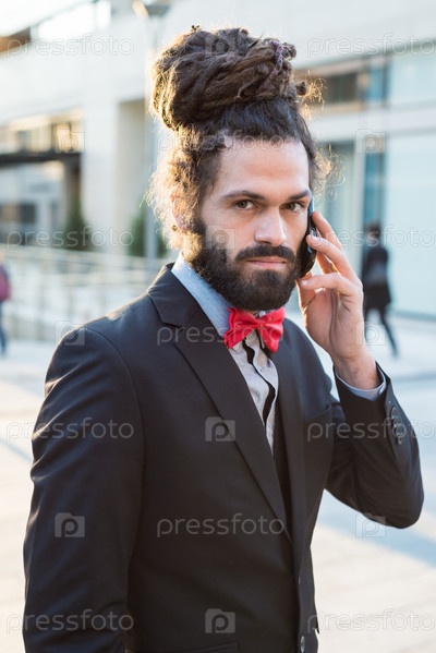 Стильный молодой мужчина с телефоном