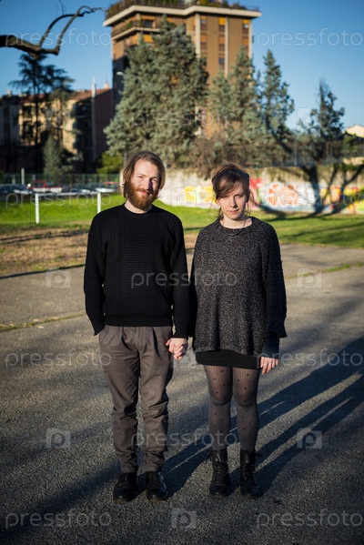 Молодая влюбленная пара на улице