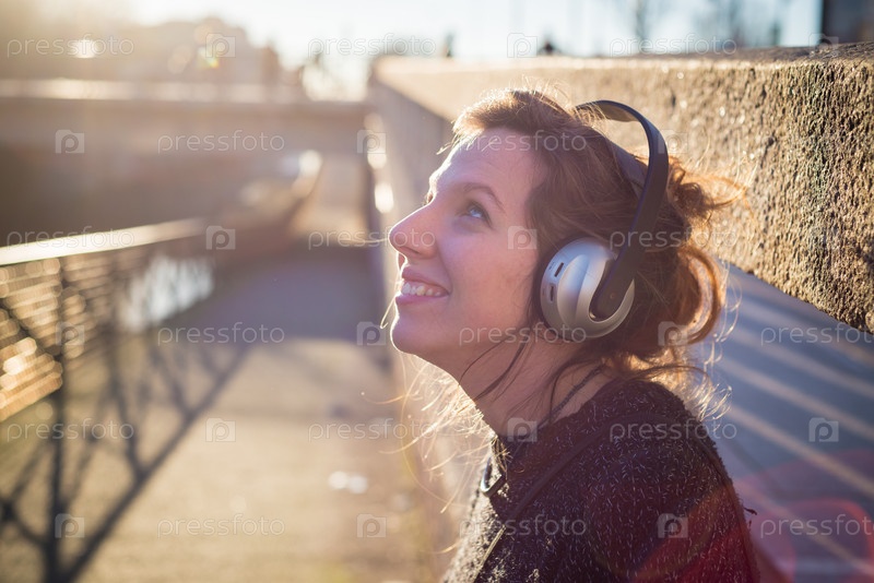 Молодая женщина слушает музыку