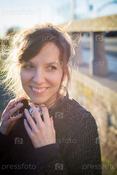 Молодая женщина слушает музыку