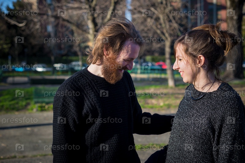 Молодая пара хипстеров на улице