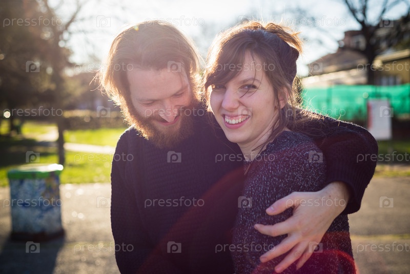 Молодая пара хипстеров на улице