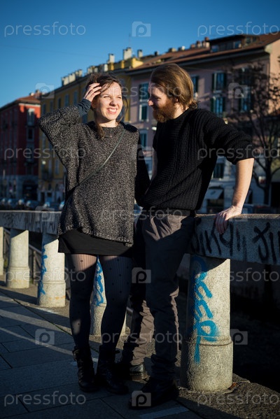 Молодая пара хипстеров на улице