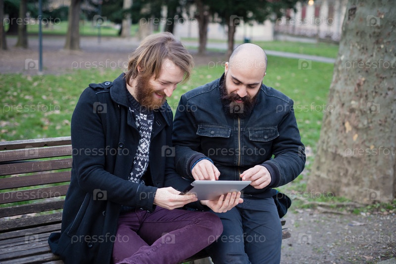Молодые стильные мужчины на улице
