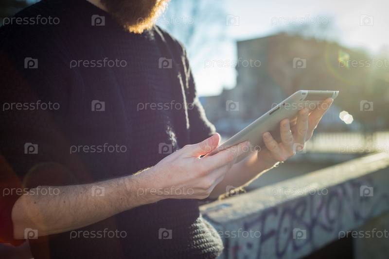 Молодой бородатый мужчина с планшетом