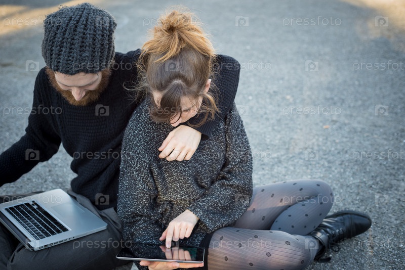 Молодой мужчина и женщина на улице
